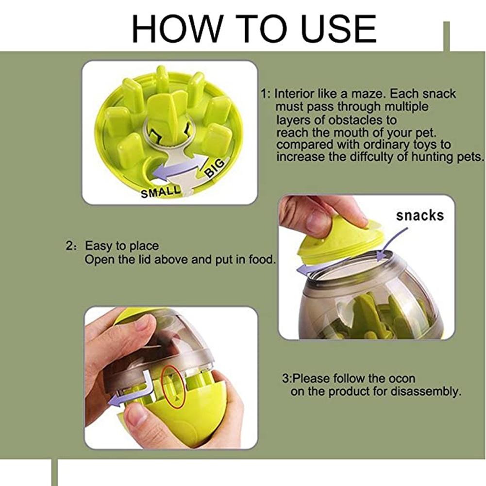 A fun way to give your cats and dogs their favorite snacks. Simply fill the ball, select the difficulty level and let your pets get to work!