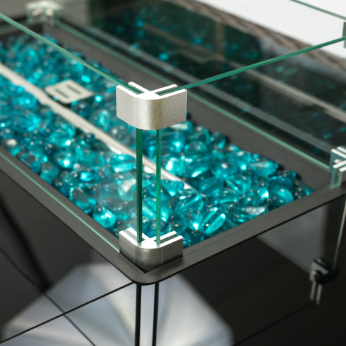 Outdoor 44" Fire pit Table Rectangle with 8mm Tempered Glass Tabletop
